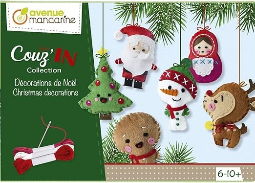 Questa scatola creativa contiene 6 oggetti di natale da appendere e da cucire per introdurre i bambini al cucito, permettendo di sviluppare la manualità dando un tocco originale al vostro albero.