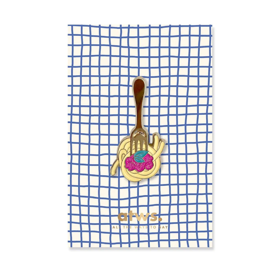 – la spilla “fork and pasta” raffigura una forchetta dentro ad un piatto di pasta