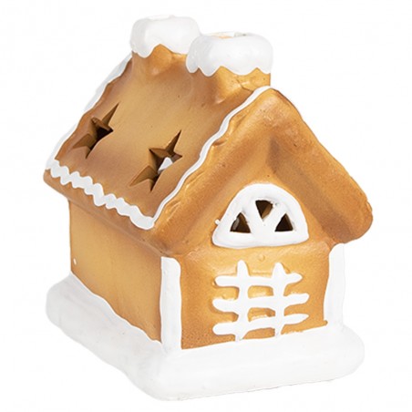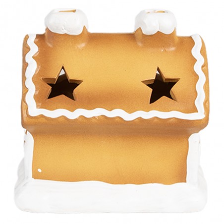 La casa di pan di zenzero presenta dettagli colorati come finestre zuccherate e comignoli coperti di ‘neve’. Sul tetto sono presenti due fori a forma di stelle che permetto di far diffondere la luce del led, conferendogli un aspetto festoso e giocoso. Questa casa emana calore e accoglienza, rendendola un’aggiunta perfetta alla tua decorazione natalizia.