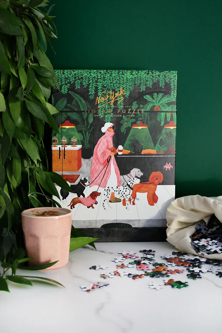 Passeggia per le strade della città con il puzzle da 1000 pezzi “Dog Sitter” e vivi la gioia di una giornata condivisa con i tuoi fedeli compagni. Pezzo dopo pezzo, svela una scena allegra, piena di movimento, stile e tenerezza. Una volta completato, forma un’illustrazione di 68 x 49 cm che cattura il fascino vivace della vita quotidiana e il legame tra umani e cani.
