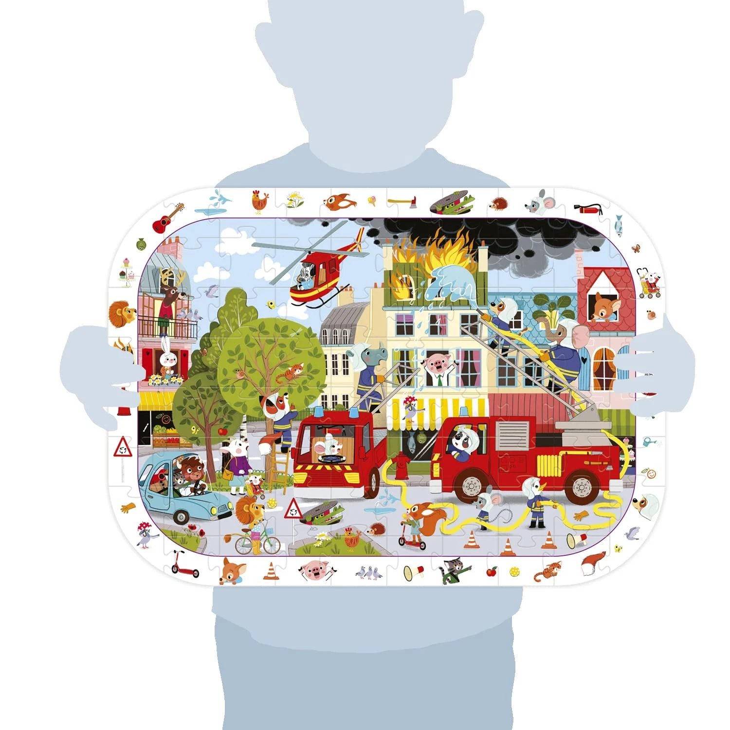 Questo è un puzzle d’osservazione composto da 76 pezzi che rappresenta l’intervento dei vigili del fuoco per spegnere un incendio. I bambini si divertiranno prima a comporre il puzzle e poi sul bordo troveranno tutti gli oggetti da cercare nella figura. Come se fossero due giochi in uno! Questo gioco contiene anche un’immagine guida di come sarà il risultato finale.